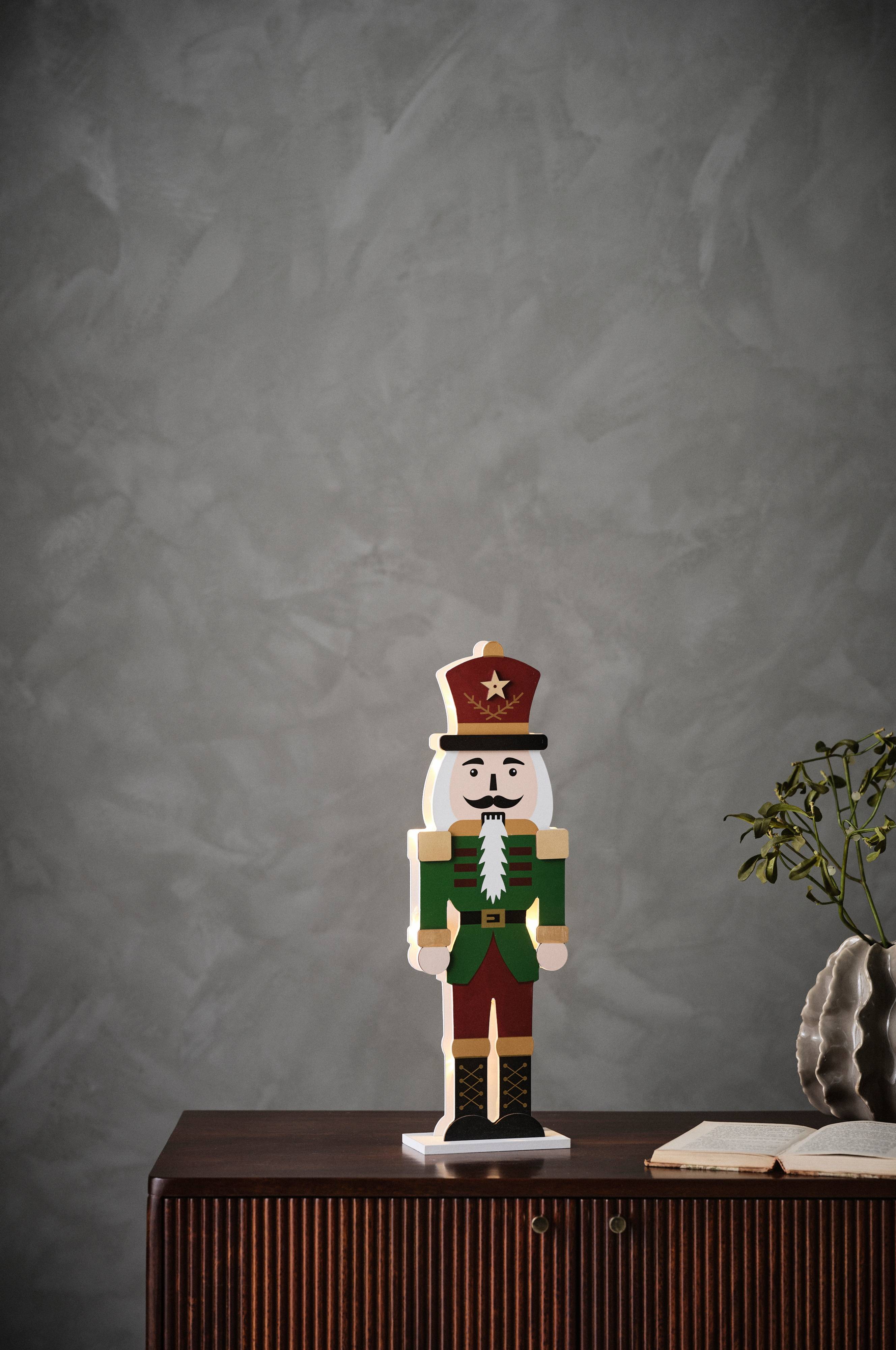 Paristokäyttöinen joulukoriste sisäkäyttöön. 10 pientä LED-lamppua loistavat lämmintä valoa kahden muotoonsahatun siluetin välistä. Koristeessa on kaksi puolta. Hahmo on laserleikattua puuta ja maalattu tyylikkäin värein. Koristeessa on sisäänrakennettu ajastin, joka on 6 tuntia päällä ja 18 tuntia pois päältä. Integroitu virtakytkin. Keskimääräinen paloaika 1000 tuntia. Toimii kahdella AA-paristolla. Paristot eivät sisälly pakkaukseen.