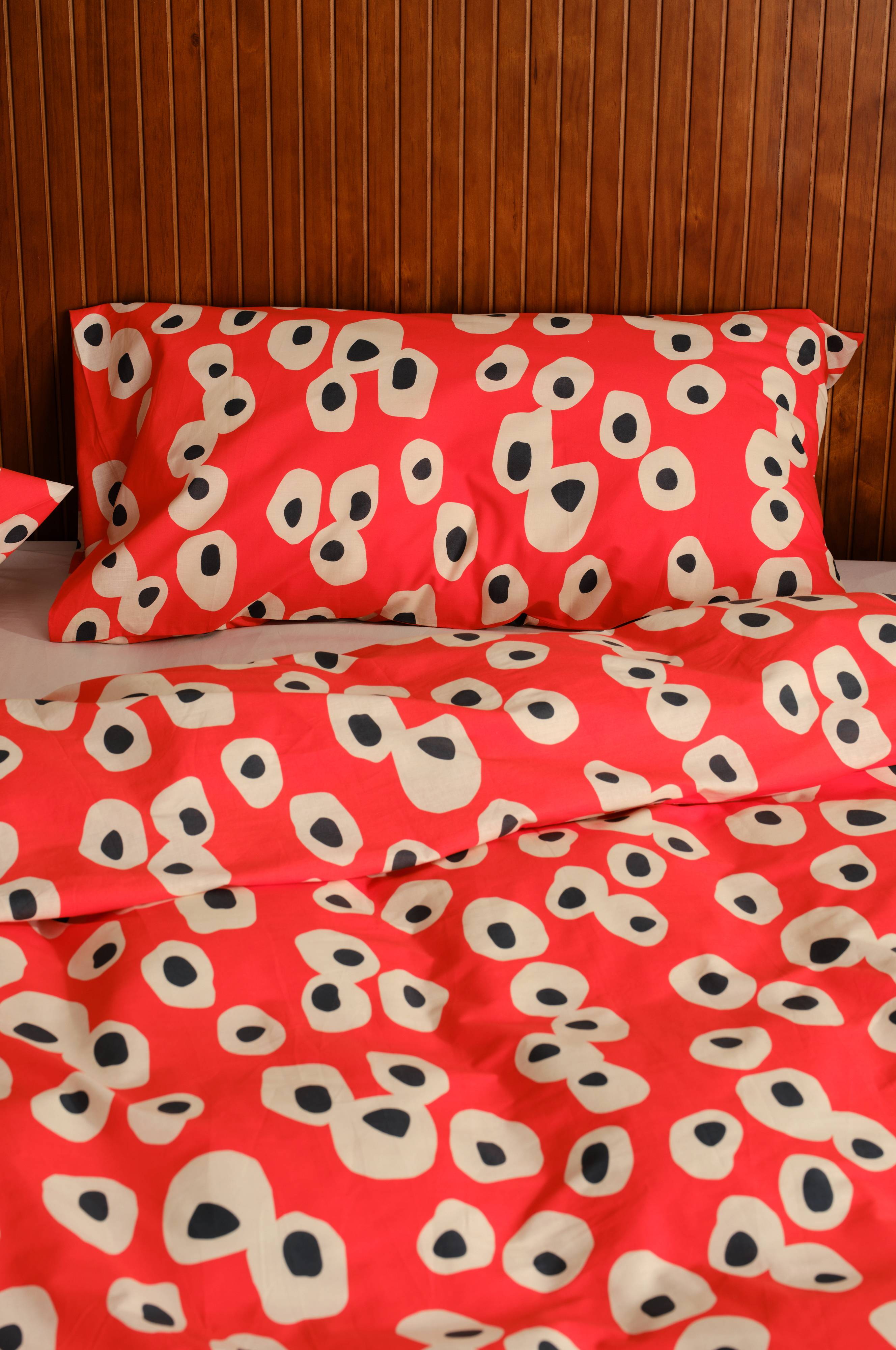 OVO-tyynynpäällinen tuo leikkisän vivahteen makuuhuoneen sisustukseen Maria Carlbergin suunnittelemalla ainutlaatuisella kuviolla. Pigmenttipainettu kuvio on saanut inspiraationsa paistetuista kananmunista, ja se tuo nostalgiaa ja leikkisyyttä mihin tahansa tilaan. Orgaanisesta puuvillasta valmistettu tyynynpäällinen lupaa mukavuutta ja tyyliä, ja siinä yhdistyy vaivattomasti retrohenkinen viehätysvoima ja moderni elämä. Syleile tätä taiteellista lisäystä, jotta kotiisi saadaan elävä ja kutsuva tunnelma.