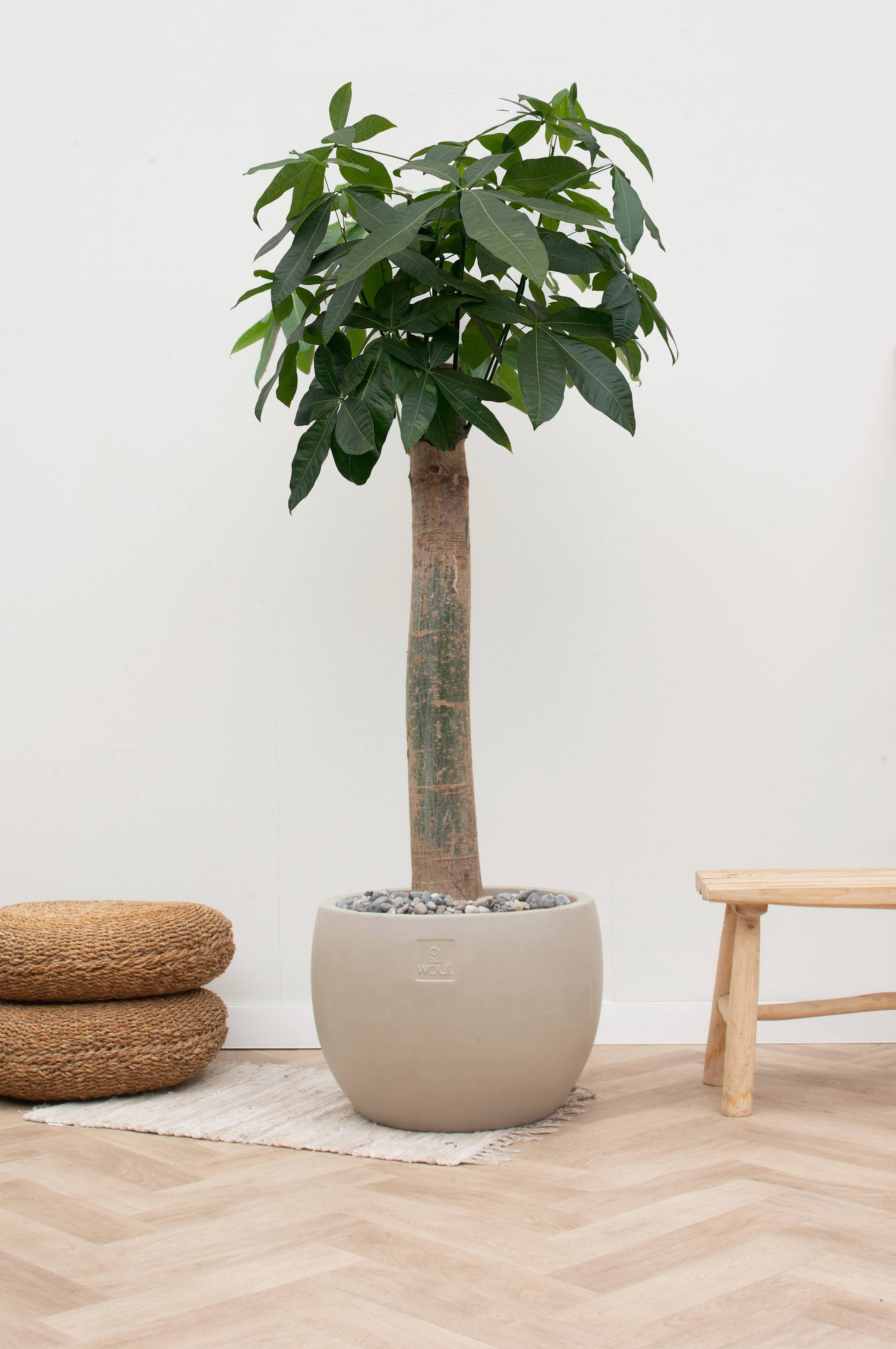 Pachiralla tai rahapuulla, kuten sitä myös kutsutaan, on erittäin paksu runko, mikä tekee tästä kasvista suositun kaikissa sisätiloissa. Se on myös erittäin helppohoitoinen ja puhdistaa ilmaa. Kastellaan kahden tai kolmen viikon välein riippuen kodin lämpötilasta ja sisäilman kosteudesta. Korkeus 220 cm. Ruukun halkaisija 40 cm. Koristeruukku ei sisälly toimitukseen. Tuoksu: ei tuoksua.