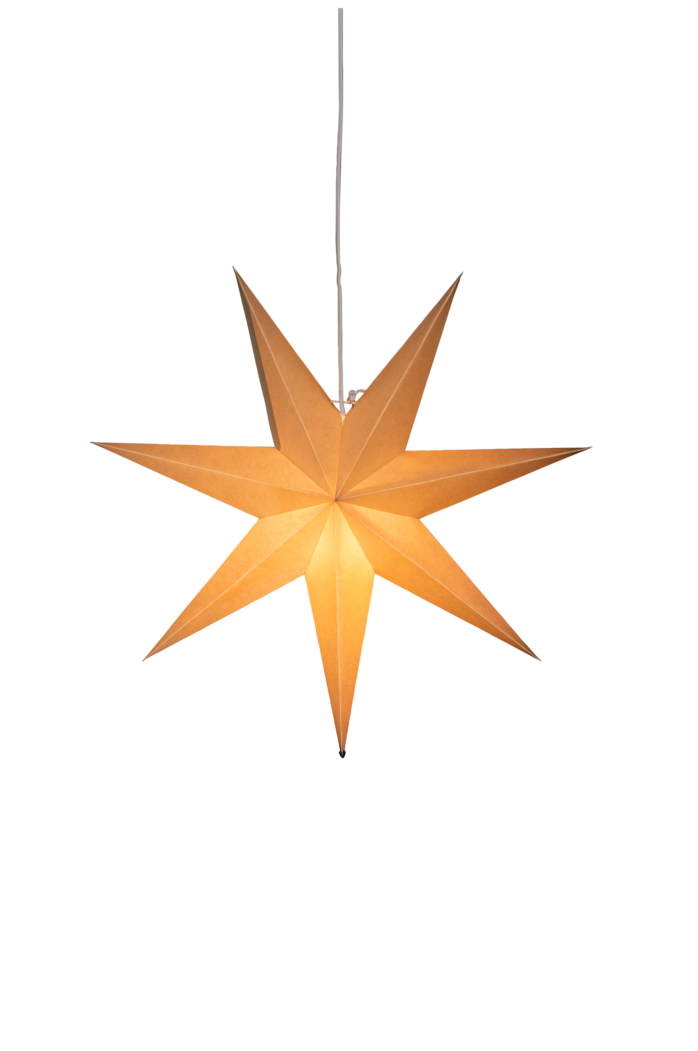 Riippuva paperitähti, jossa 7 sakaraa. Mukana liitäntäjohto 5 metriä, E14-lampunkanta. Virtakatkaisin johdossa. Halkaisija 60 cm.