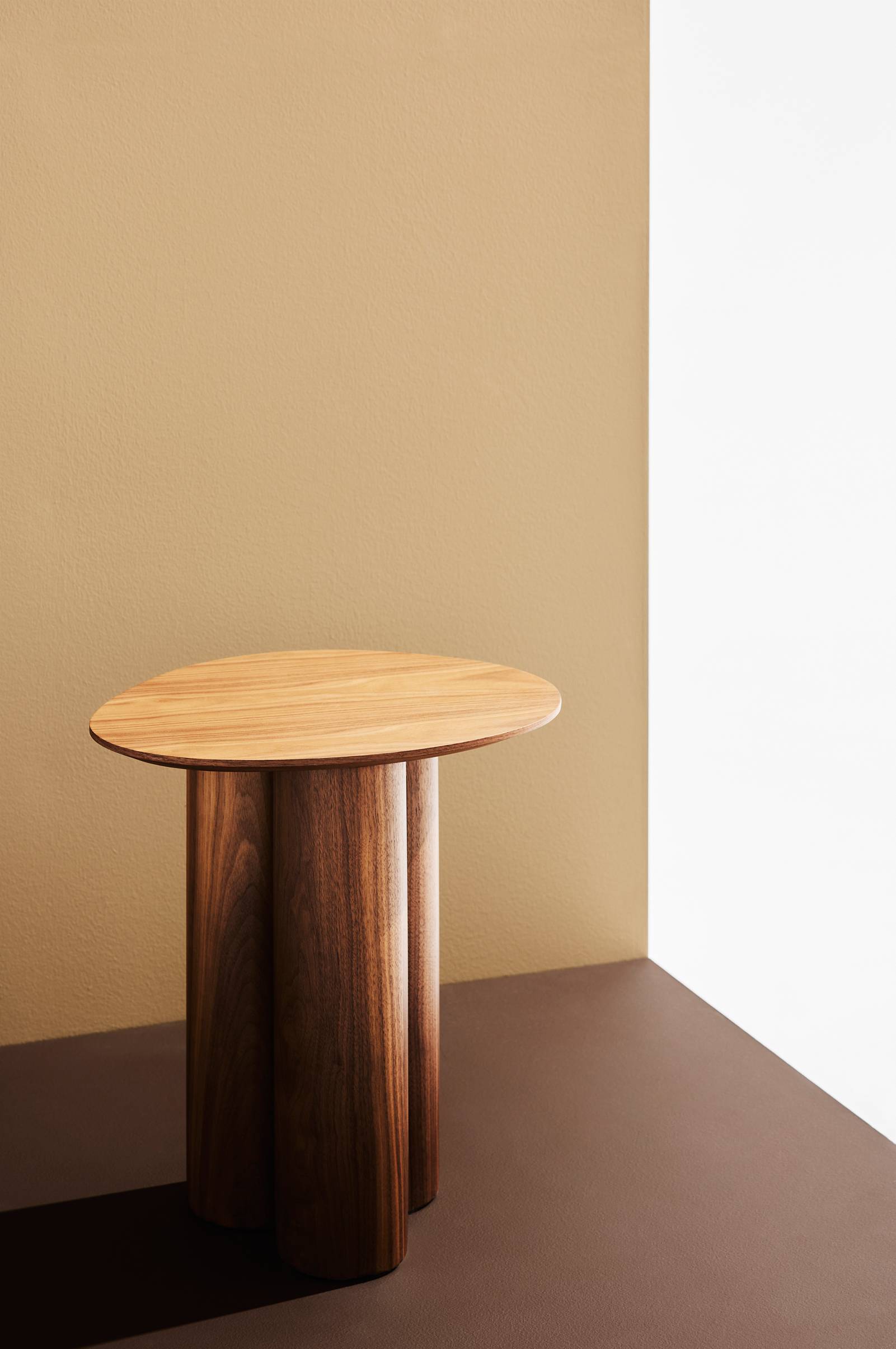 Remi on tyylikäs sivupöytä, jossa on epäsymmetrinen pöytälevy, jonka alareuna on pehmeästi pyöristetty.