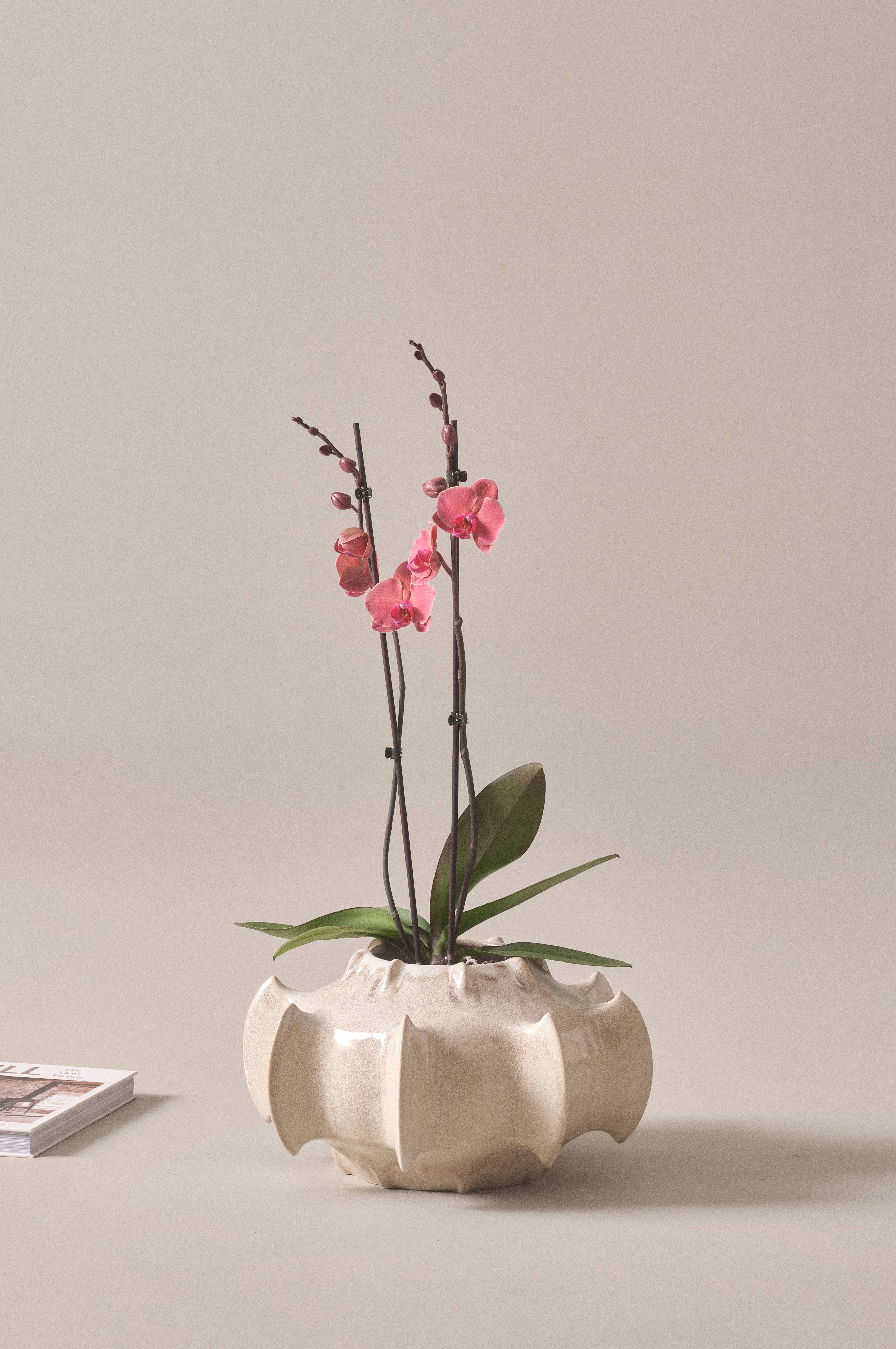 Phalaenopsis Asian Coral on kaunis ja runsaasti kukkiva orkidea. Elävällä viherkasvilla on kaksi vartta ja noin 18 korallinpunaista kukkaa. Kasvin tyvessä sijaitsevat lehdet ovat kauniin tummanvihreät. Orkidea on helppohoitoine ja kestävä, ja saatavilla on tuhansia eri lajeja. Phalaenopsis kuuluu suosituimpiin lajikkeisiin. Helppohoitoinen viherkasvi kukkii pitkään ja on erittäin kiitollinen kasvi. Se viihtyy huoneenlämmössä ja sopii useimpiin huoneisiin aina kylpyhuoneesta olohuoneeseen. Kasvi toimitetaan muovisessa sisäruukussa.
