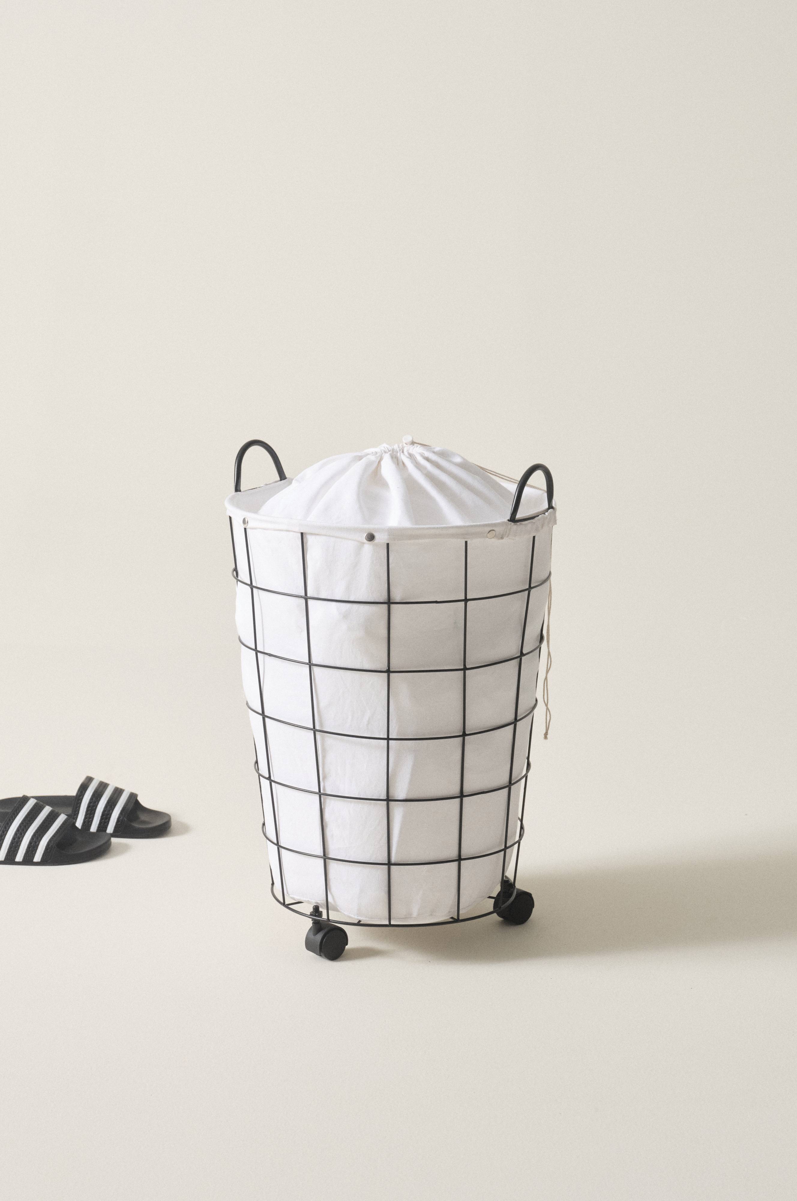 Kätevä, pyöreän mallinen pyykkikori, joka muistuttaa rautalankakoria. Pyörät ja kaksi kahvaa. Pyykkikori on kevyt liikuttaa, joko pyörien avulla tai nostamalla. Pyykit laitetaan puuvillaiseen kangaspussiin. Kangaspussi on pestävä. Metallipyörät. POGGIO on kevyt, kätevä ja tilava pyykkikori.