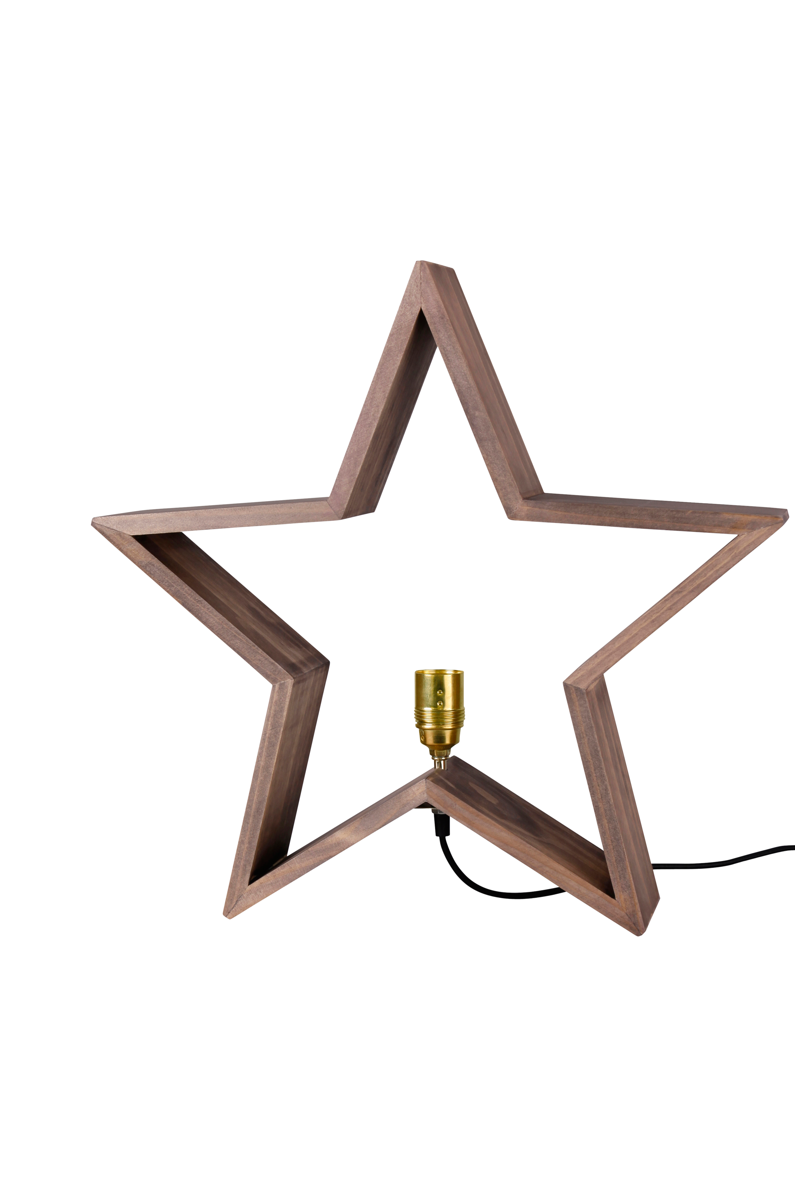 Lysekil-puutähti. Leveys 52 cm. Syvyys 10 cm. Korkeus 52 cm. Musta kangaspäällysteinen johto 1,8 m. 230 V. E27-lampunkanta. Lamppu ei ole mukana.