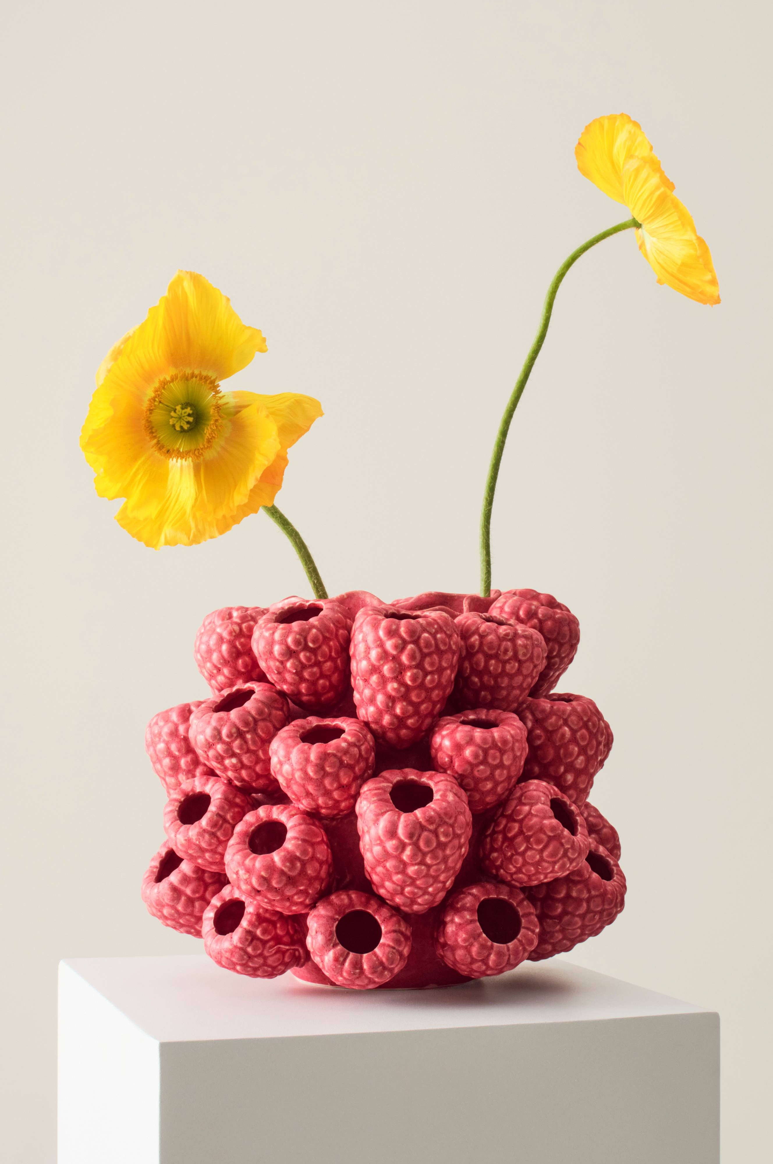 RASPBERRY on käsintehty keraaminen maljakko, ja hienon lopputuloksen aikaansaamiseksi on käytetty suurta tarkkuutta. RASPBARRY antaa kesäistä tunnelmaa ympäri vuoden. Jokainen vadelma on asetettu maljakkoon käsin. Lasite kimaltelee hennoissa sävyissä ja sen pinta on kiiltävä. Myös sisäpuoli on lasitettu. Hieno käsityötaito tekee jokaisesta maljakosta ainutlaatuisen. Keramiikka voi päästää kosteutta läpi.