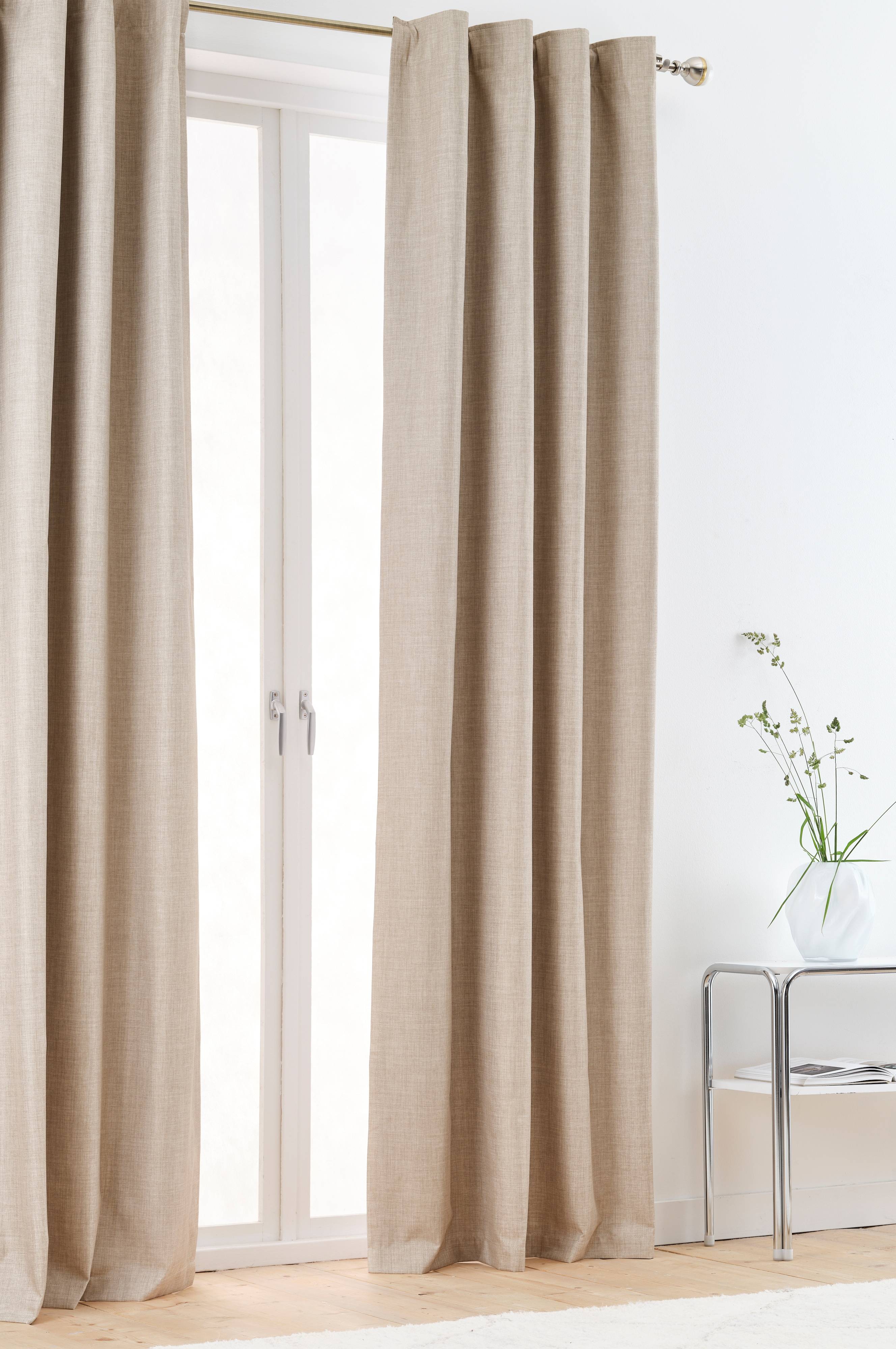 Sivuverho polyesteriä. Päälleommeltu monitoiminauha. Sulje valo ulos milloin haluat. Pimennysverhon struktuuri, matta pinta ja hohtavat langat luovat ainutlaatuisen tunnelman huoneeseen. Valon sisään pääsyn estävä pinnoite takana. Monitoiminauhan ansiosta verhon voi ripustaa poimutusnauhan, piilolenkkien tai laskosnauhan avulla.
