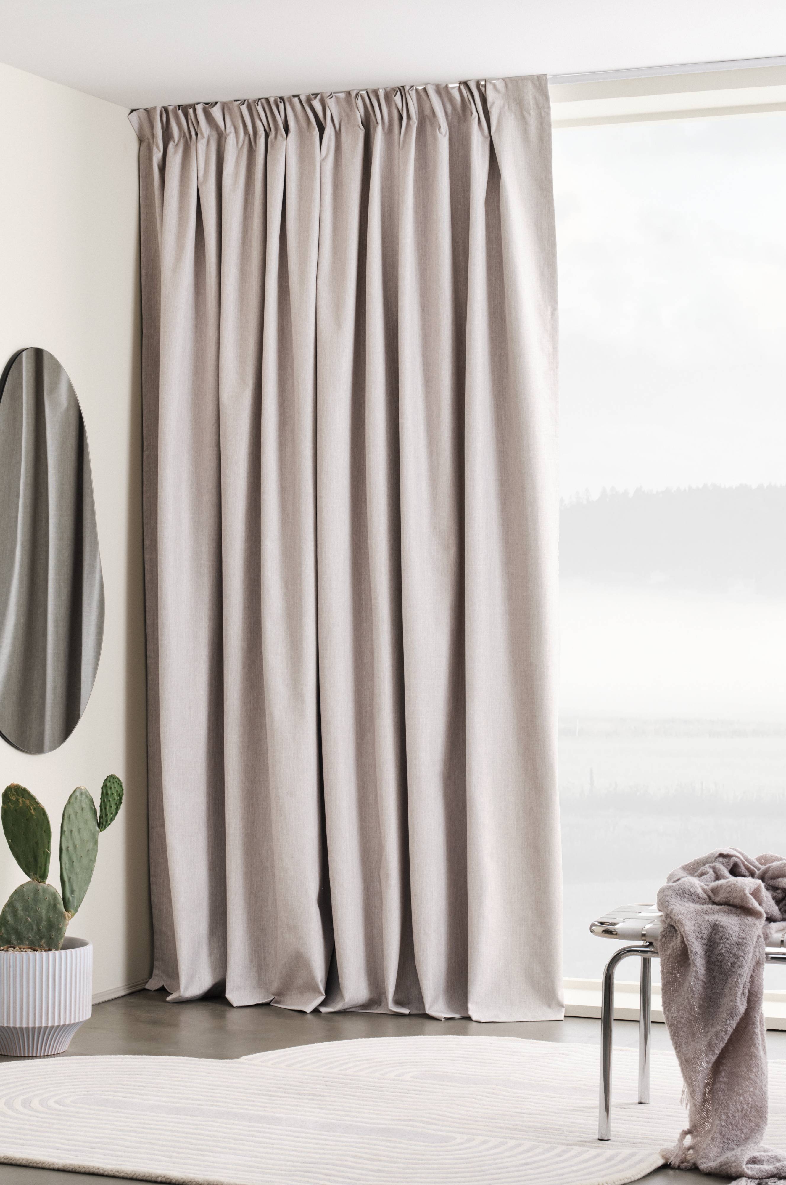 Sivuverho polyesteriä. Päälleommeltu monitoiminauha ja pimentävä pinnoite takana. Sulje valo ulos milloin haluat. Pimennysverhon struktuuri, mattapinta ja hohtavat langat luovat ainutlaatuisen tunnelman huoneeseen. Monitoiminauhan ansiosta verhon voi ripustaa poimutusnauhan, piilolenkkien tai laskosnauhan avulla.