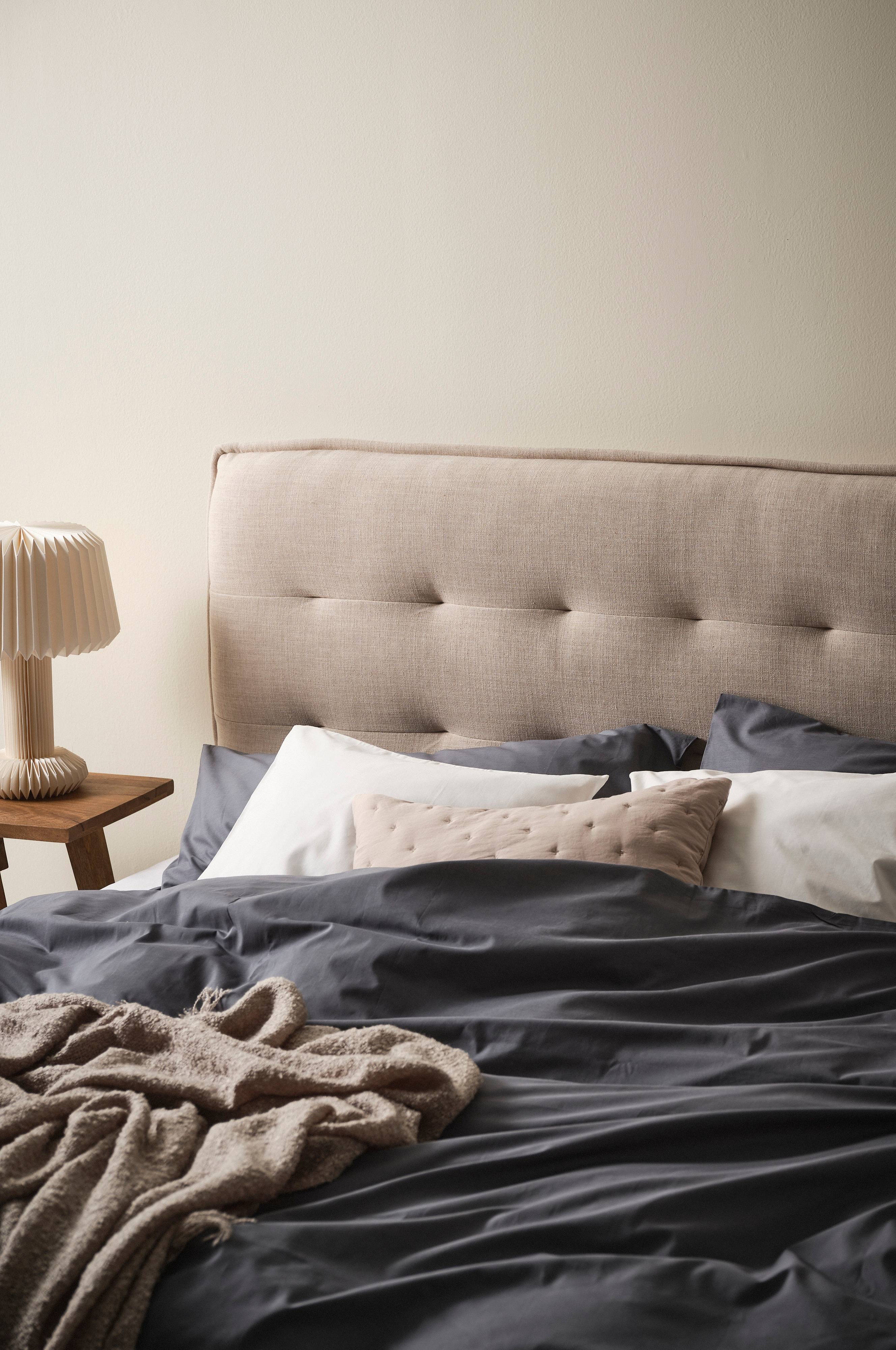Sängynpääty pellava- ja polyesterikangasta, joka tuntuu miellyttävältä pellavalta. Runko FSC-sertifioitua massiivipuuta ja vaneria. Kutsuvassa sängynpäädyssä on pehmeä, paksu toppaus, syvään upotetut koristenapit ja pieni reunus ympäriinsä. Kestävän päällisen Martindale-arvo on 30 000. ROSARIO-sängynpäätyyn on mukava nojata, jos haluat nauttia aamukahvin sängyssä istuen. Vapaasti seisova sängynpääty sijoitetaan joustinpatjan ja seinän väliin. Seinäkiinnike mukana.