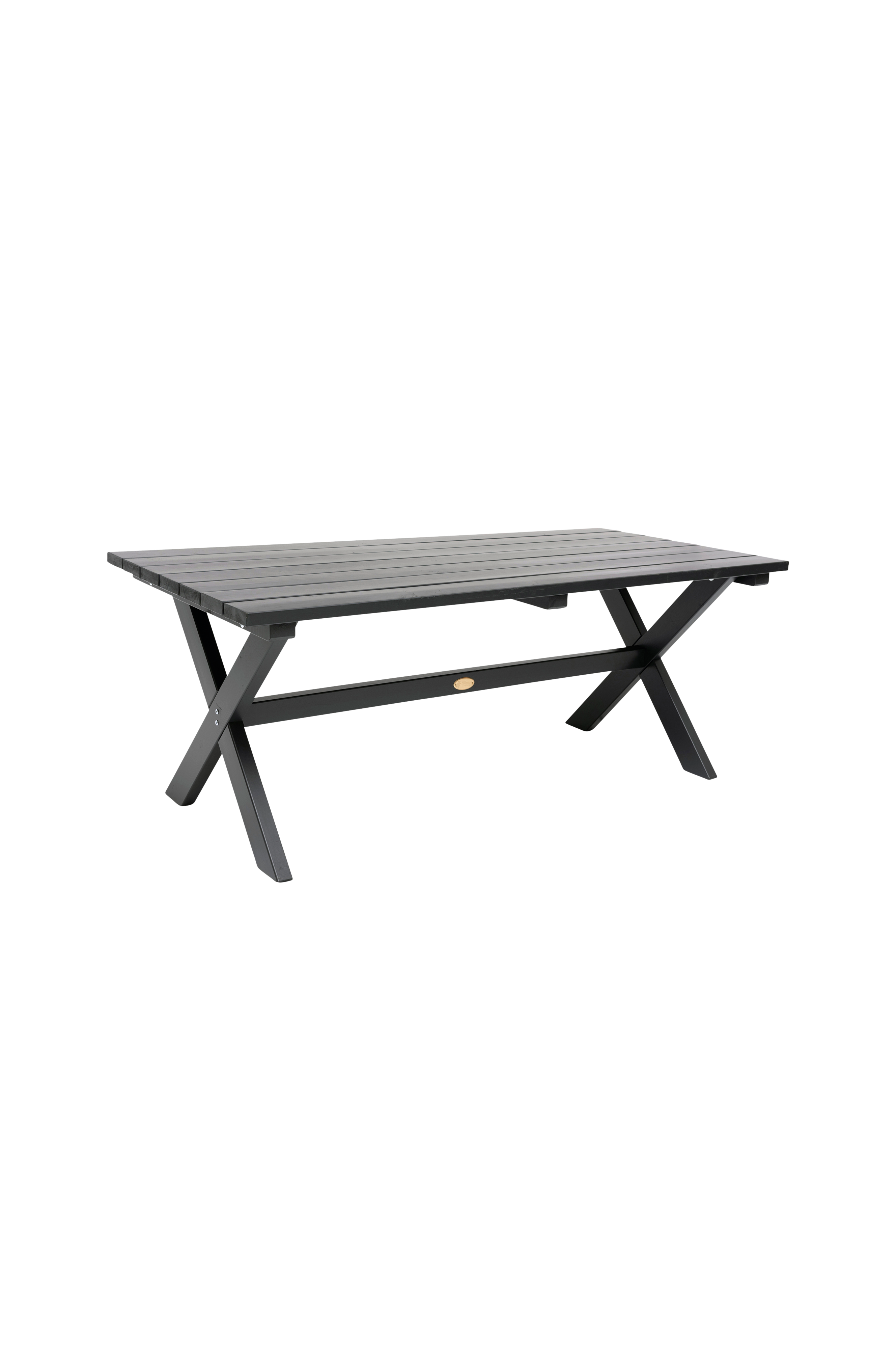 Myrskynharmaa pöytä FSC®-mäntyä. 86 x 195 cm, korkeus 72 cm. Koottava.