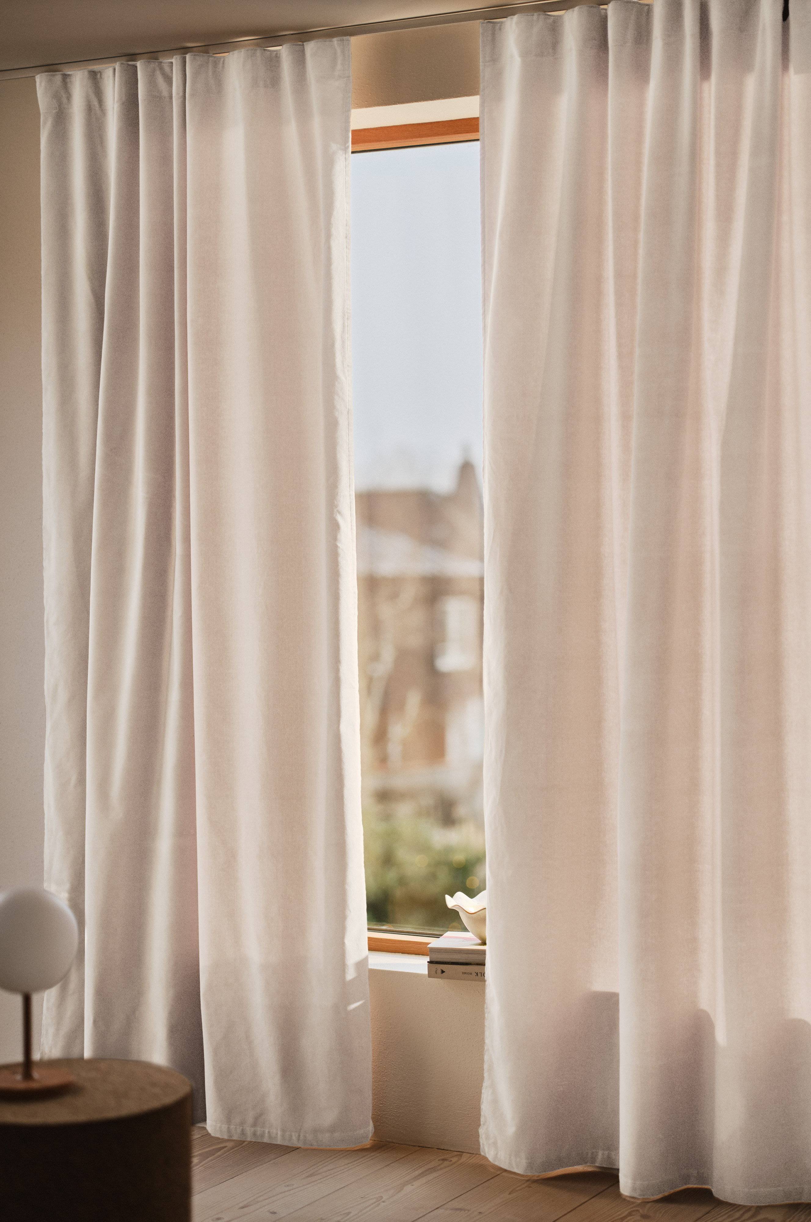 Erittäin hienot ja ylellisen näköiset verhot. Väri on enemmän ruskeaan beigeen kuin vaaleaan, mikä sopi täydellisesti olohuoneemme sisustukseen!