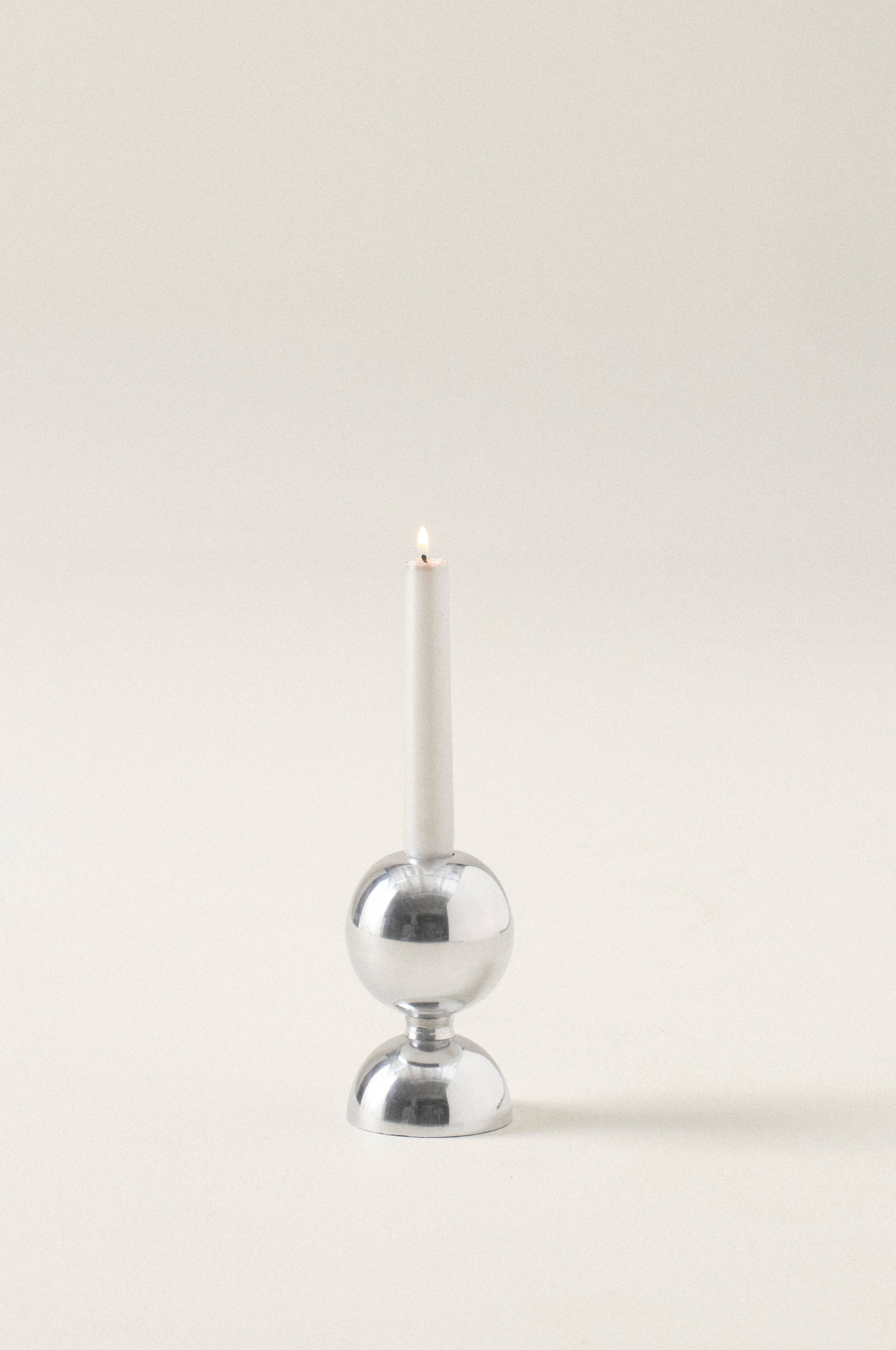 Alumiininen kynttilänjalka, joka koostuu yhdestä kokonaisesta pyöreästä pallosta ja yhdestä puolikkaasta, nimi tulee siitä. Krominvärinen, kiillotettu kynttilänjalka, jossa kiiltävä hohto. Kynttilä ei sisälly toimitukseen.