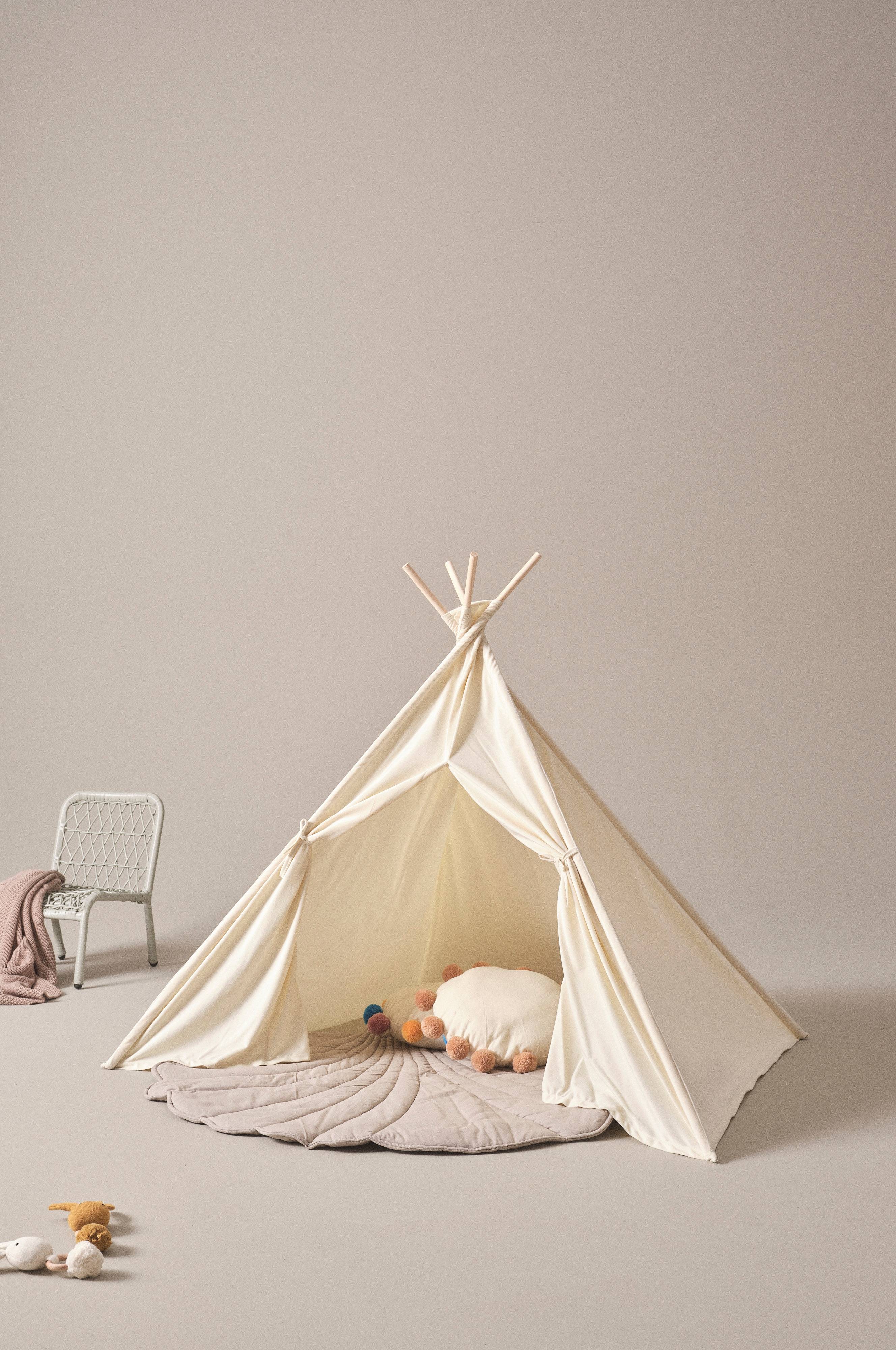 Leikkiteltta, jossa neljä sivua ja neljä telttakeppiä. Edessä solmittavat nauhat. Telttakangas on valmistettu polyesteristä, joka tuntuu pehmeältä sametilta. Leikkiteltta sopii erinomaisesti leikkiin tai mukaviin satuhetkiin ja on tyylikäs lastenhuoneen sisustusyksityiskohta. Tuote on CE-merkitty ja täyttää EU:n voimassa olevien lelusäännösten vaatimukset.
