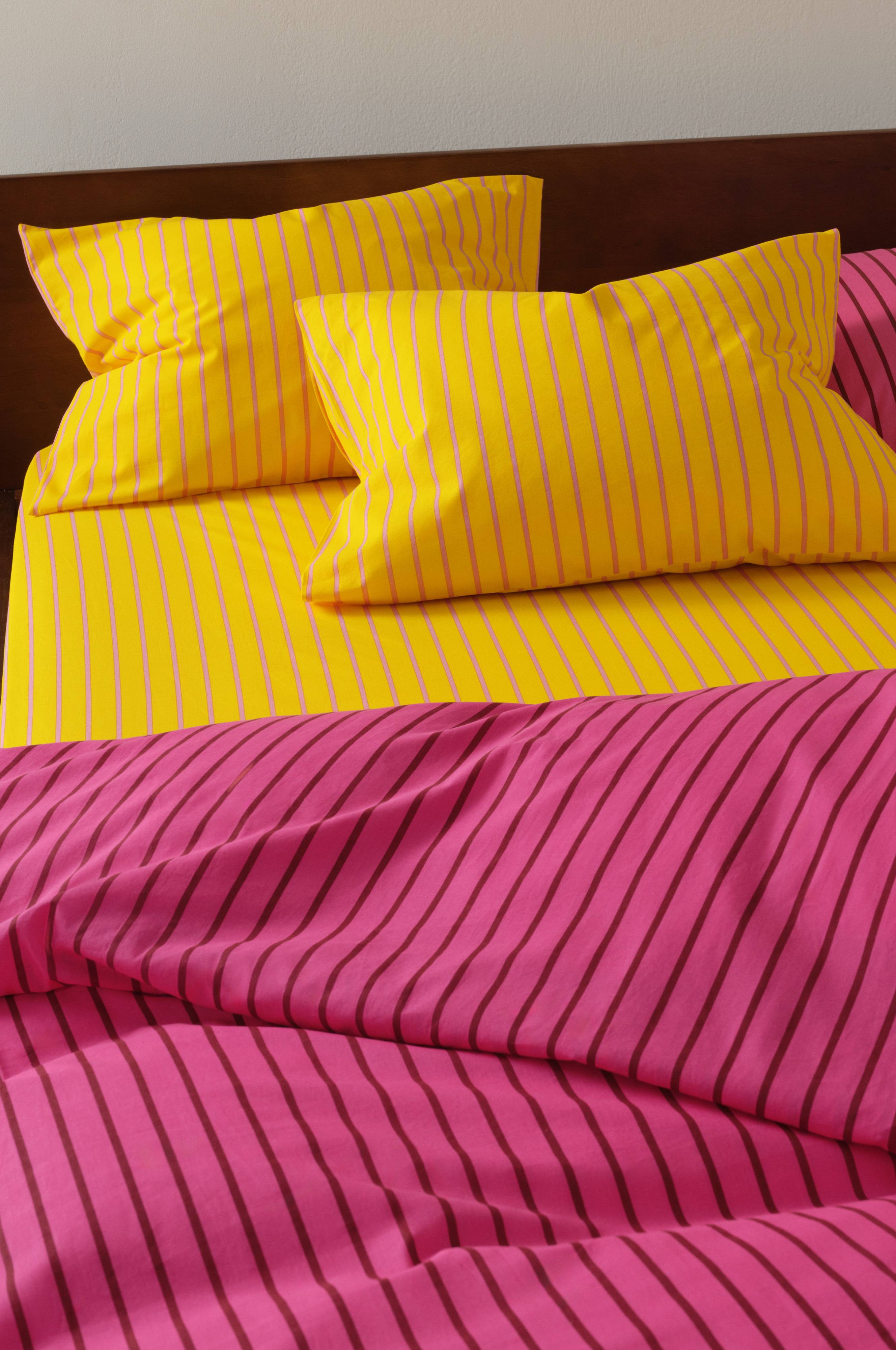 SIMA 2-pack tyynyliina ekologisesta puuvillasta. Painetut raidat raikkaissa väreissä. Muuta makuuhuoneesi levolliseksi paikaksi.