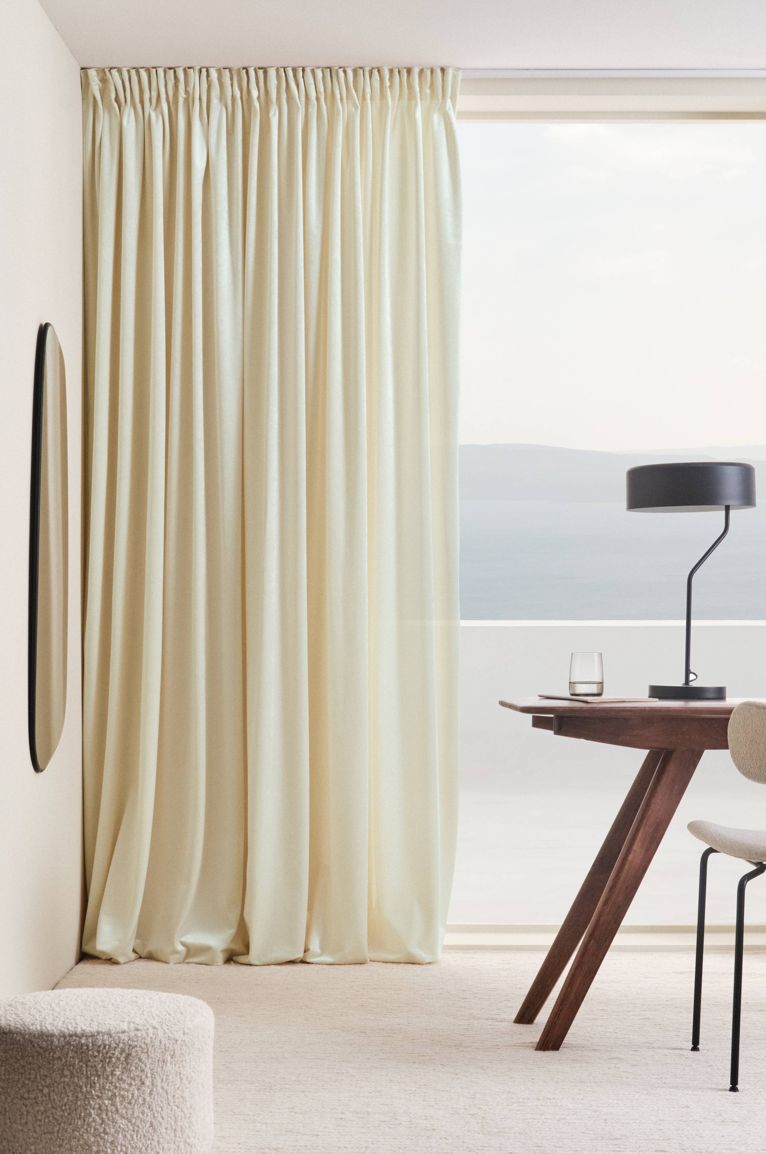 Vinkki: Pidennä verhojen käyttöikää imuroimalla ne varovasti pehmeällä suulakkeella tasaisin väliajoin. Näin vältät pölyn ja lian tunkeutumisen kankaaseen. Lisäksi verhot säilyttävät värinsä pidempään. Tahrat poistetaan lämpimään veteen kostutetulla vaalealla liinalla. Taputtele tahraa varovasti liinalla, höyrytä ja anna kuivua.