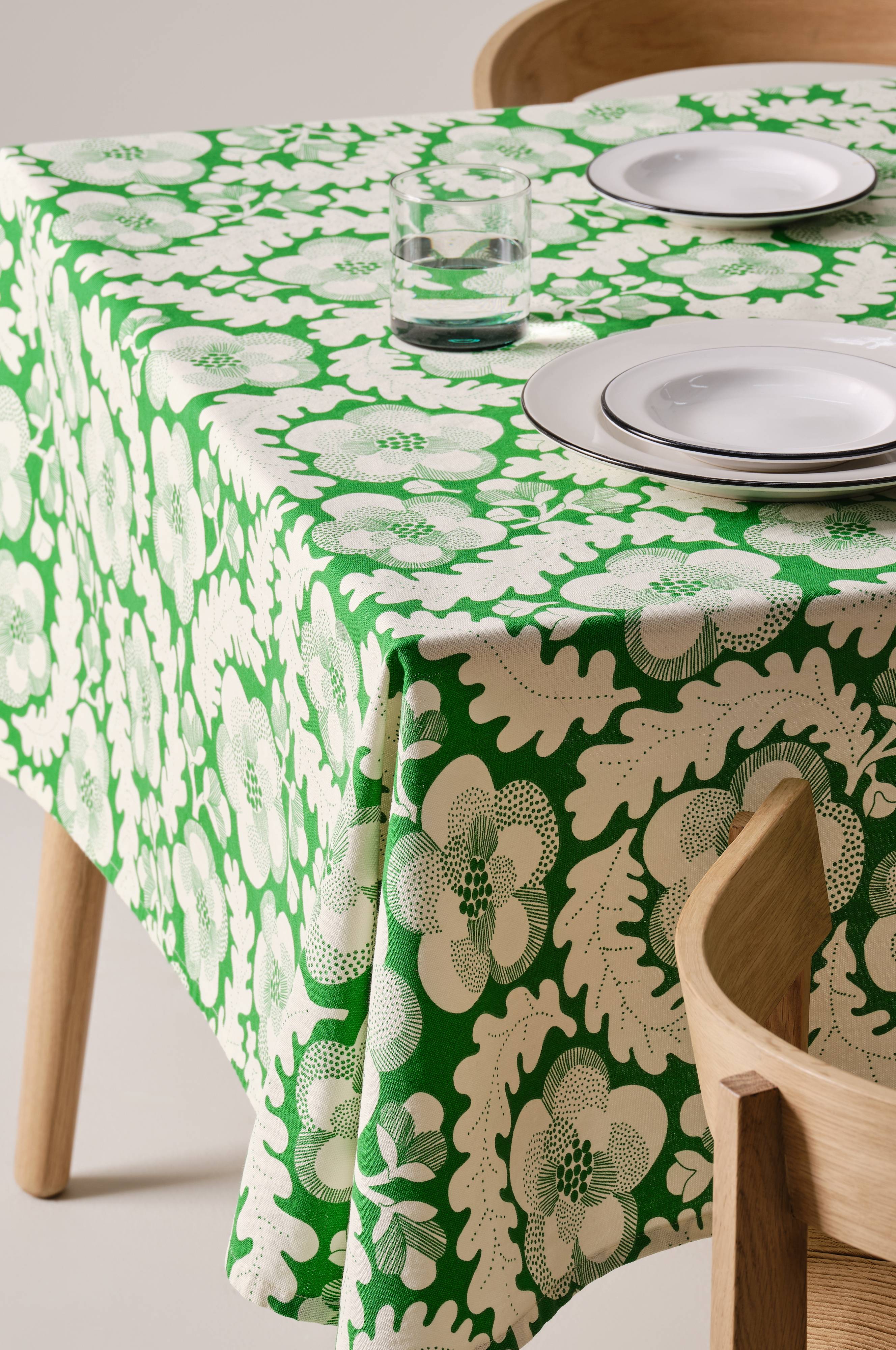 SLING-pöytäliinassa on Maria Carlbergin suunnittelema ihastuttava kukkakuvio, joka tarjoaa retrovaikutteista charmia. Muunna ruokailukokemuksesi tällä tyylikkäällä esineellä, joka on osa SLING-perhettä, johon kuuluu yhteensopivia esineitä. Täydellinen lisäämään ripauksen vintage-tunnelmaa mihin tahansa ateria-asetelmiin, mikä parantaa sekä arkea että erityisiä tilaisuuksia.