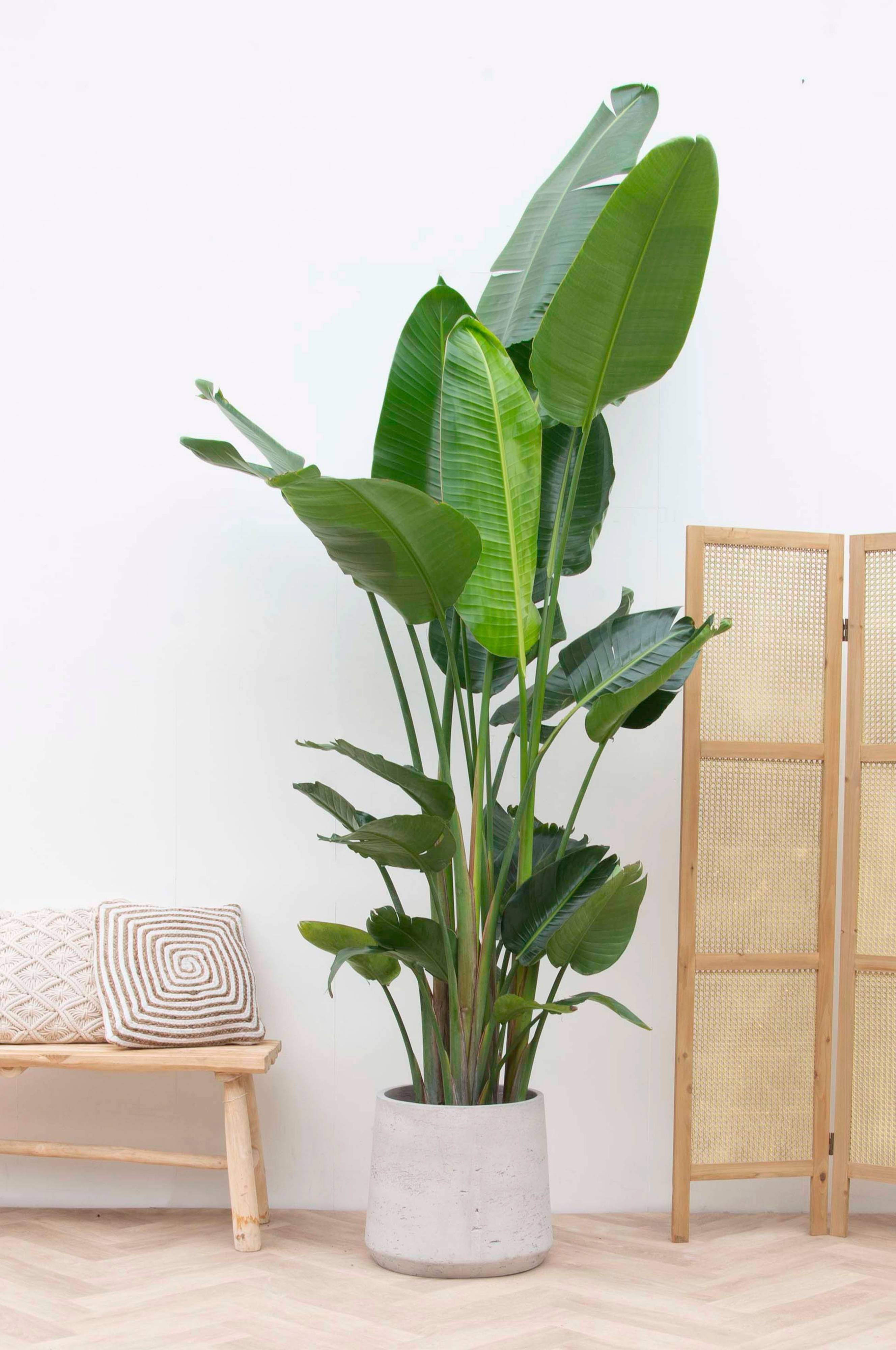 Strelitzia Nicolai XXL muuttaa kotisi trooppiseksi paratiisiksi. Strelitzia eli paratiisilintukasvi tunnetaan massiivisista vihreistä lehdistä, ja siitä tulee todellinen katseenvangitsija kotiin tai työpaikalle. Suosittu kasvi on helppohoitoinen ja puhdistaa ilmaa. Sijoita valoisaan paikkaan ja kastele perusteellisesti kerran viikossa. Kasvi ei saa kuivua kokonaan. Korkeus 230 cm. Ruukun halkaisija 40 cm. Koristeruukku ei sisälly toimitukseen. Tuoksu: ei tuoksua.