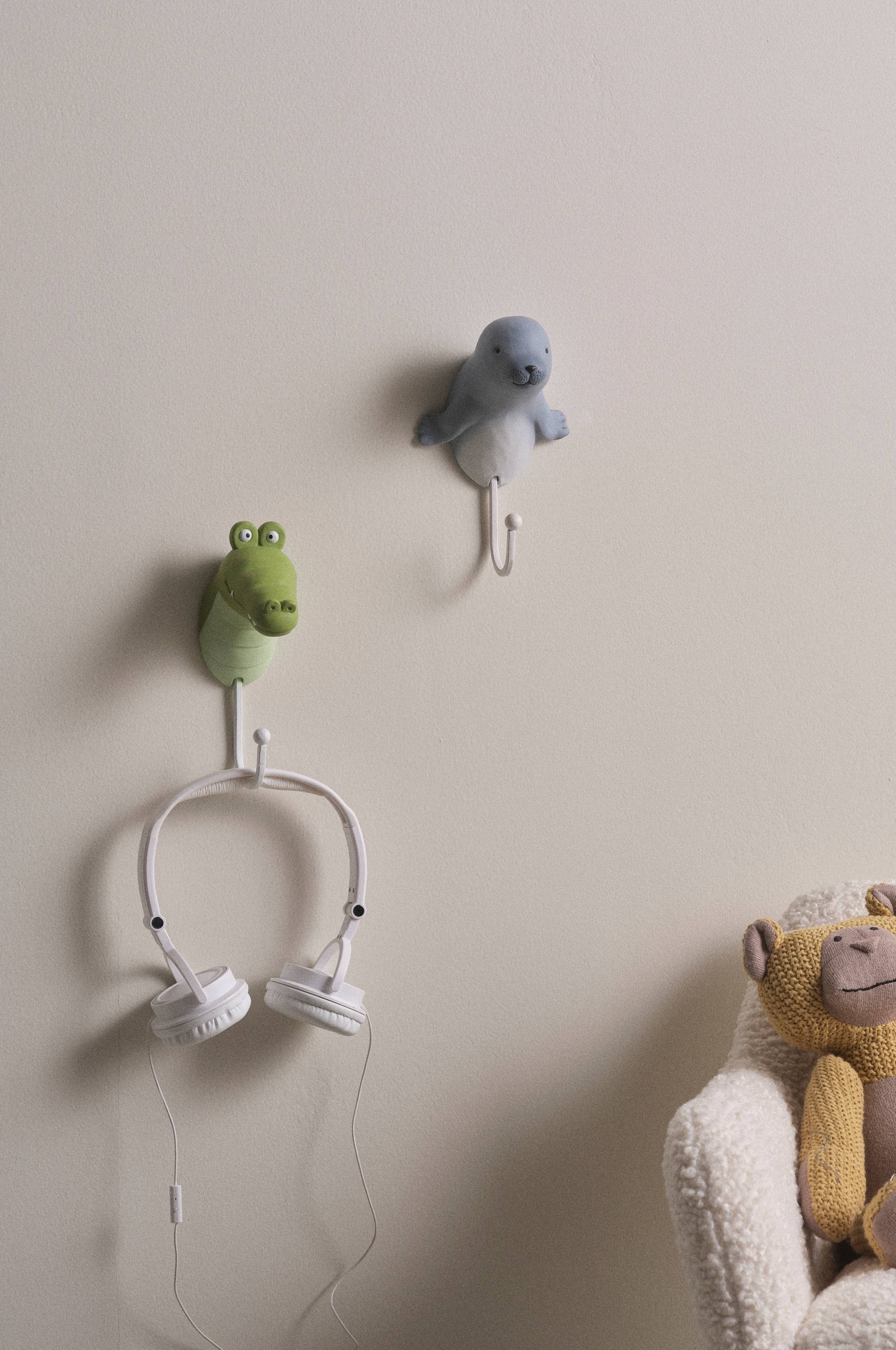 Käsintehdyt koukut dolomiittiposliinia ja kalkkikiveä, ripustin rautaa. 2/pakk. Eläimet on maalattu kauniilla mattapintaisilla väreillä. Hylje ja krokotiili muodostavat seinälle kaksikon, johon on hauska ripustaa vaatteet. Voimakkaasti taivutetuissa koukuissa ripustetut asiat pysyvät paikoillaan. Mukava yksityiskohta. Koukuissa on piilotettu seinäkiinnitys.
