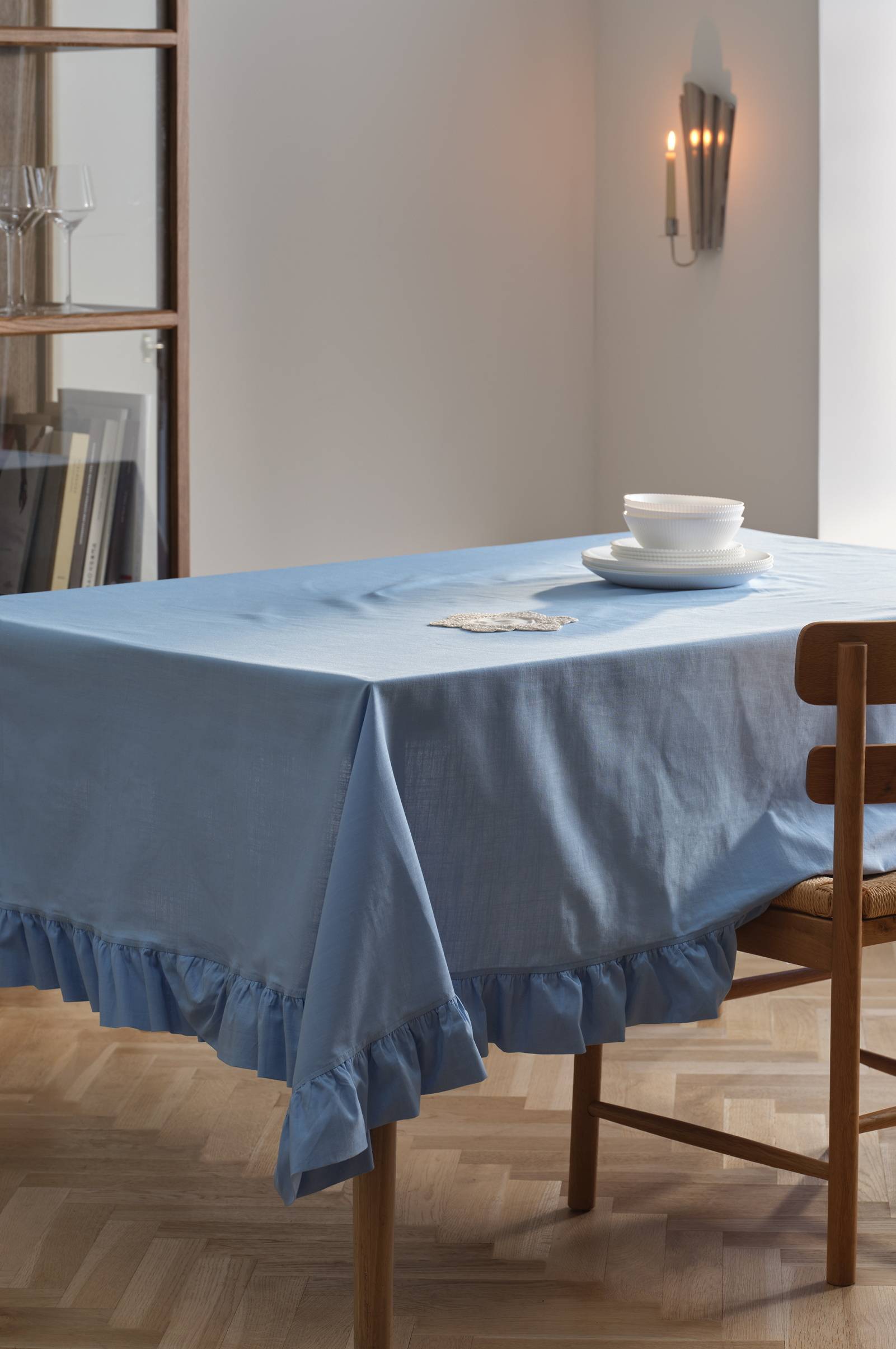 WALLACEn röyhelöinen pöytäliina tuo ruokapöytään tyylikästä tunnelmaa. Se on muotoiltu ryöppyilevillä röyhelöillä, ja se luo tyylikkään tunnelman, joka sopii erinomaisesti vieraiden viihdyttämiseen tai perheen jokapäiväisiin aterioihin. Tämä pöytäliina sopii useisiin pöydän kokoihin ja tuo hienostuneen elementin kodin sisustukseen. WALLACE muuttaa ruokailutilasi tyylikkääksi kattaukseksi kaikkiin tilaisuuksiin, olipa kyseessä sitten illallisjuhlien järjestäminen tai rento kokoontuminen.