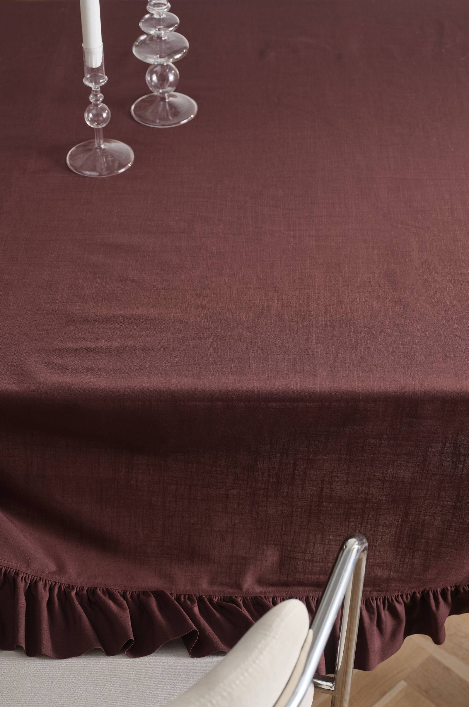 WALLACEn röyhelöinen pöytäliina tuo ruokapöytään tyylikästä tunnelmaa. Se on muotoiltu ryöppyilevillä röyhelöillä, ja se luo tyylikkään tunnelman, joka sopii erinomaisesti vieraiden viihdyttämiseen tai perheen jokapäiväisiin aterioihin. Tämä pöytäliina sopii useisiin pöydän kokoihin ja tuo hienostuneen elementin kodin sisustukseen. WALLACE muuttaa ruokailutilasi tyylikkääksi kattaukseksi kaikkiin tilaisuuksiin, olipa kyseessä sitten illallisjuhlien järjestäminen tai rento kokoontuminen.