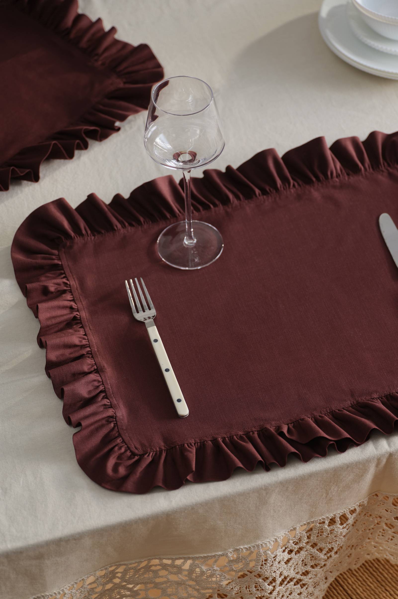 WALLACEn kaltaiset pöytäliinat tuovat ruokapöytään viehättävää tunnelmaa. Niiden röyhelöiset reunat tuovat ihastuttavan tekstuurin ja luovat täydellisen perustan pöytäsi kattaukselle. Nämä pöytäliinat sopivat erinomaisesti sekä isännöintiin että rentoihin aterioihin, ja ne sulautuvat vaivattomasti erilaisiin sisustustyyleihin. Yhtä lailla käytännölliset kuin tyylikkäät WALLACE-istuinalustat ovat erinomainen valinta parantamaan jokapäiväistä ruokailutunnelmaa.