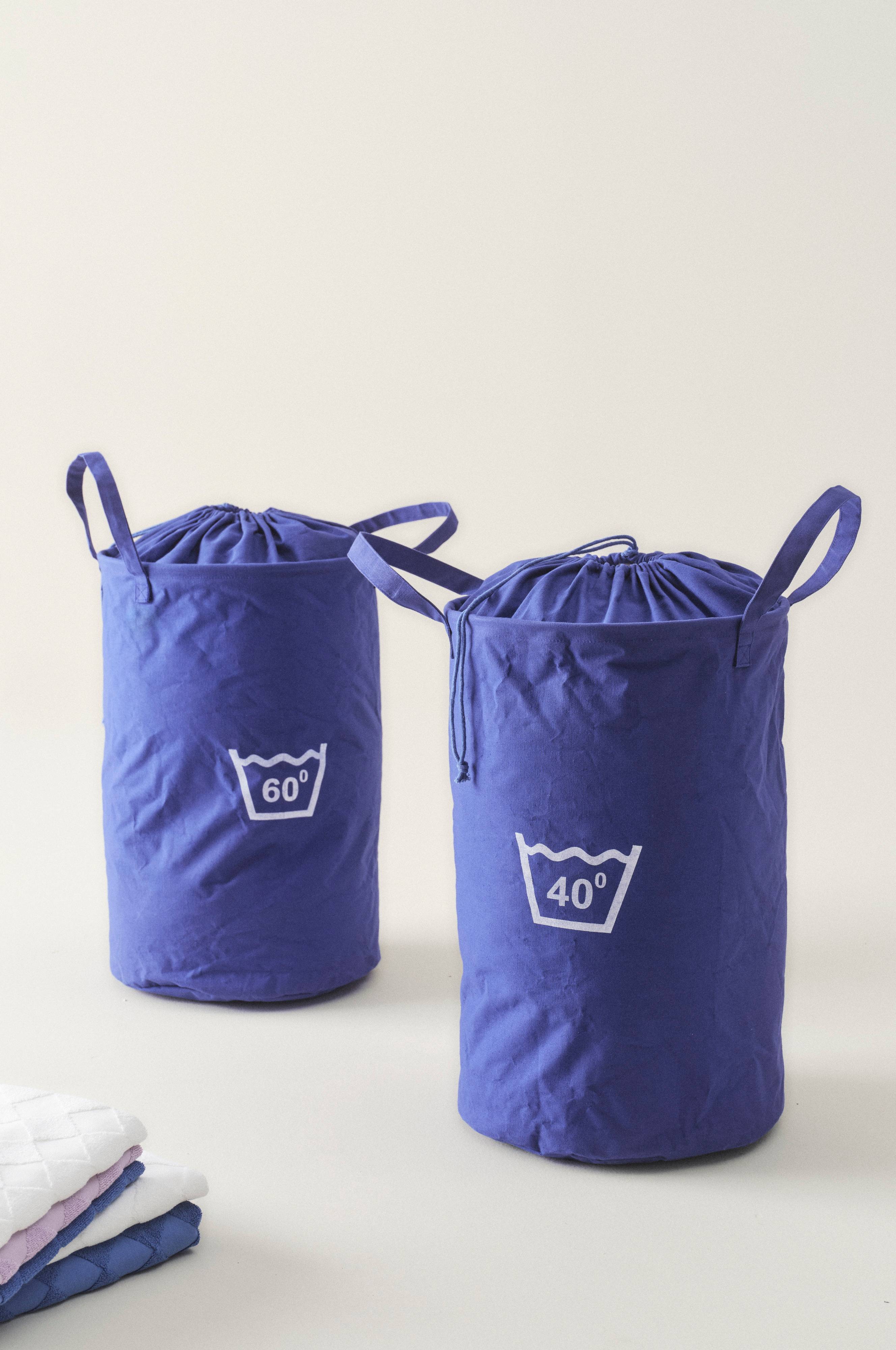 Puuvillaiset pyykkikorit, joissa kestävä polypropeenilla pinnoitettu sisäpinta. 2/pakkaus. Pyykkikoreissa on erilaiset painatukset, 40° ja 60°, mikä helpottaa pyykin lajittelua. Pyykki on valmiiksi lajiteltu, kun olet valmis aloittamaan pyykin pesun. Pyöreissä pyykkikoreissa on kätevät kahvat, joista ne on helppo kantaa kodinhoitohuoneeseen tai vaikka pidemmälle pyykkitupaan.