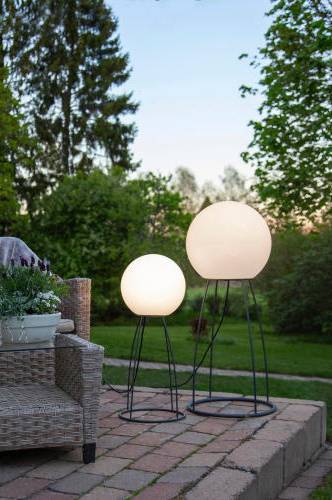 Lattiavalaisin ulkokäyttöön. Musta jalusta ja valkoinen varjostin. Valaisinta voidaan käyttää ilman jalustaa. Mustan johdon pituus 3 m.