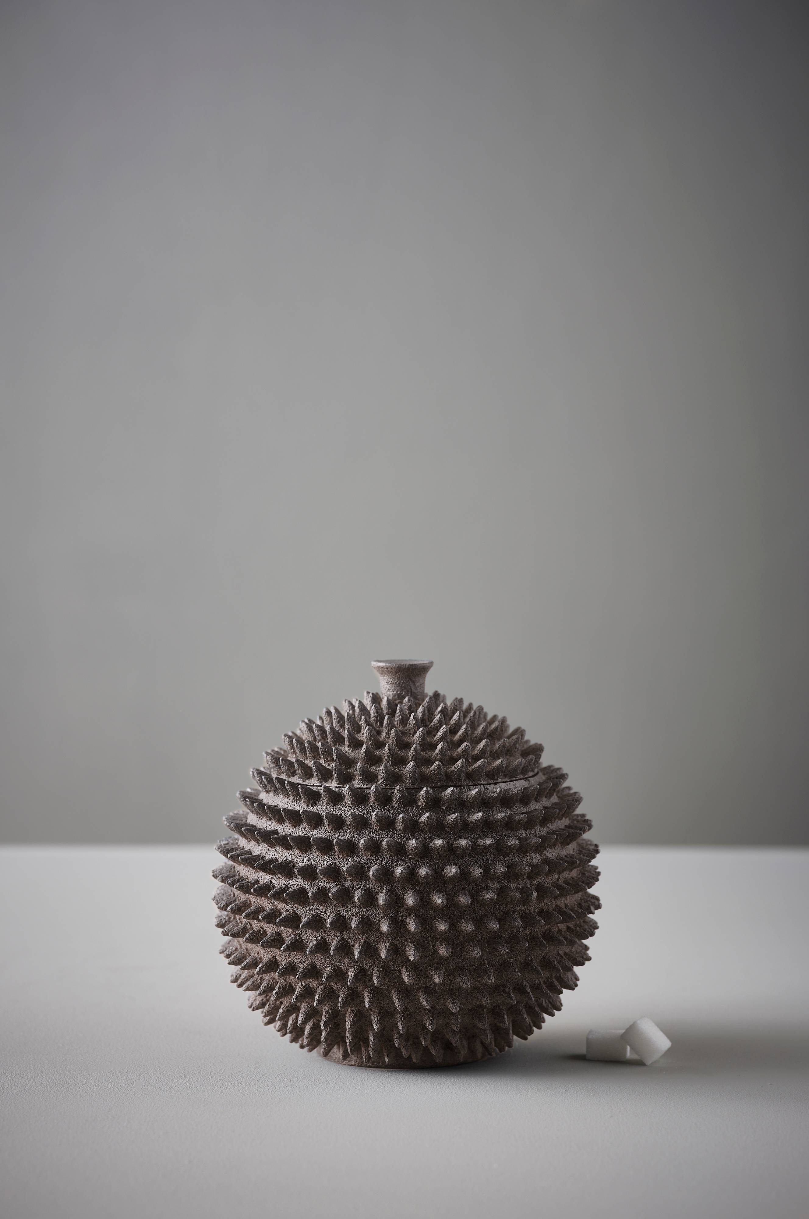 Näyttävä säilytysrasia pikkutavaroille ja upea sisustusdetalji kotiin. Utelias ei malta pitää näppejään erossa tästä mielenkiintoisesta esineestä. Piikikäs pinta saa purkin näyttämään kiveltä.