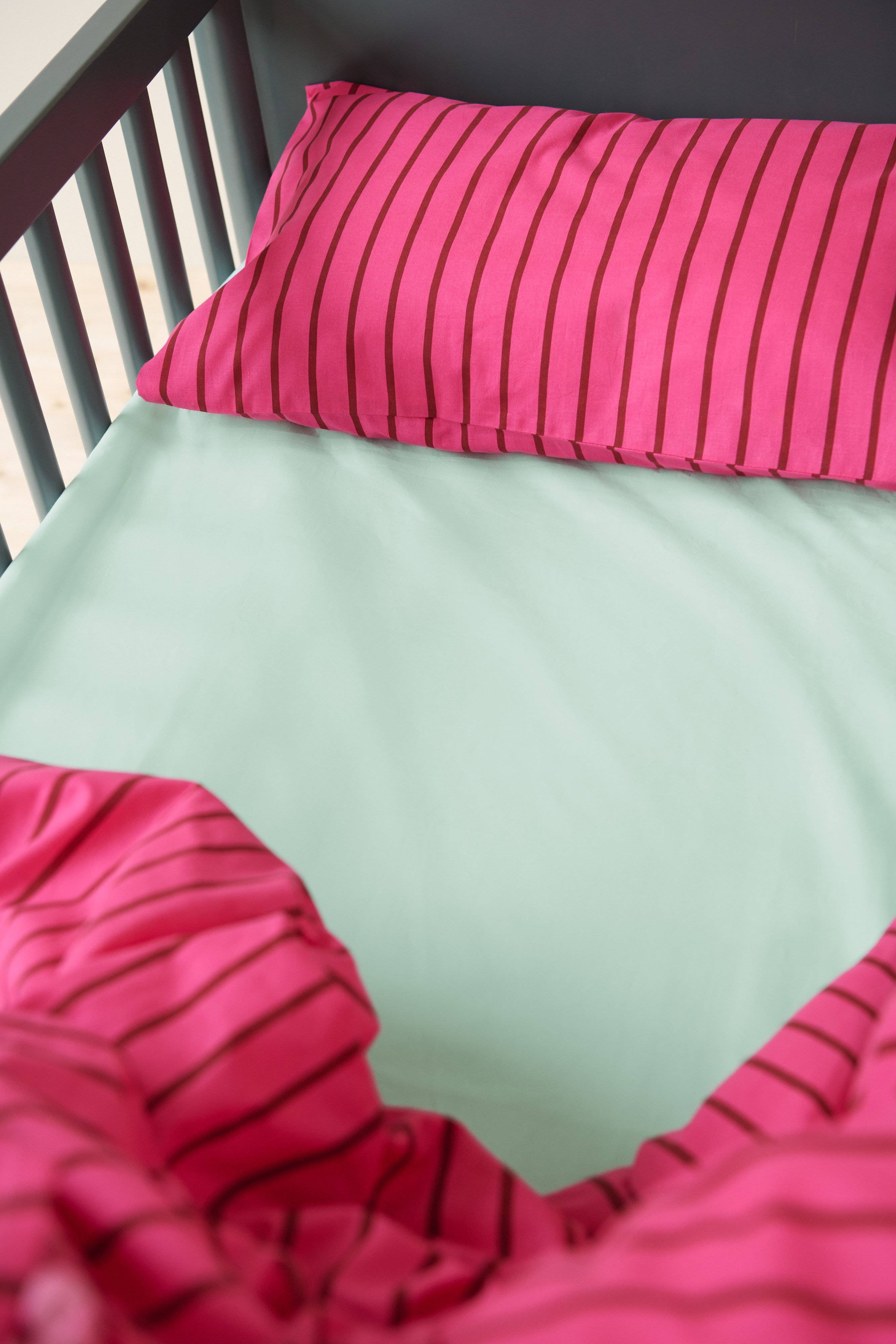 Valkoinen hieman läpinäkyvä, värilliset parempia. Ohuella patjalla istuu löysästi, mutta meillä patjan päällä paksu petauspatja niin istuu napakammin.