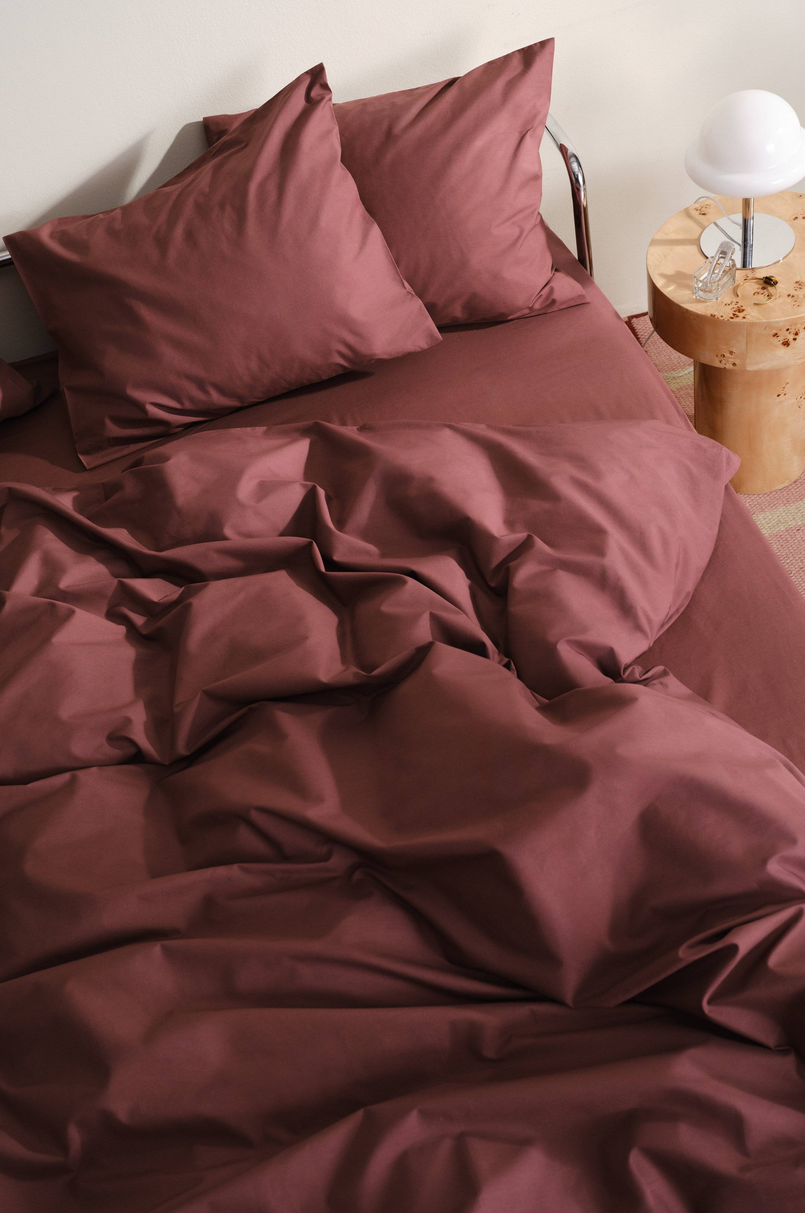 Yksivärinen kolmiosainen pussilakanasetti, yksi erittäin leveä pussilakana ja kaksi tyynyliinaa upeaa luomupuuvillaperkaalia. Percale on erittäin pehmeä ja miellyttävä kangas, joka on kudottu ohuista, hienoista puuvillalangoista.