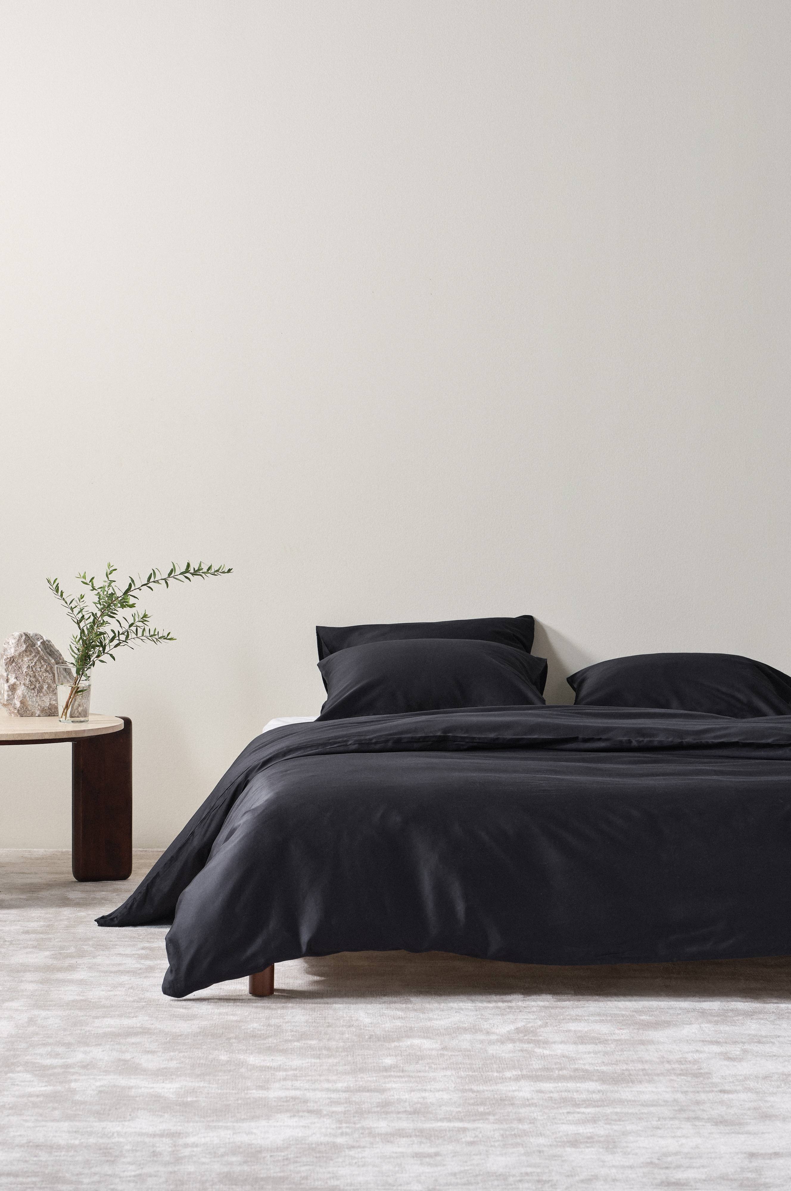 Yksivärinen kolmiosainen pussilakanasetti, yksi erittäin leveä pussilakana ja kaksi tyynyliinaa luomupuuvillasatiinia. Satiini on kudontatekniikka, joka tuottaa ihanan sileän, pehmeän ja notkean kankaan. Tällä tekniikalla kudotusta puuvillasta syntyy kangas, jossa on hieno kiilto ja ylellinen tuntu.